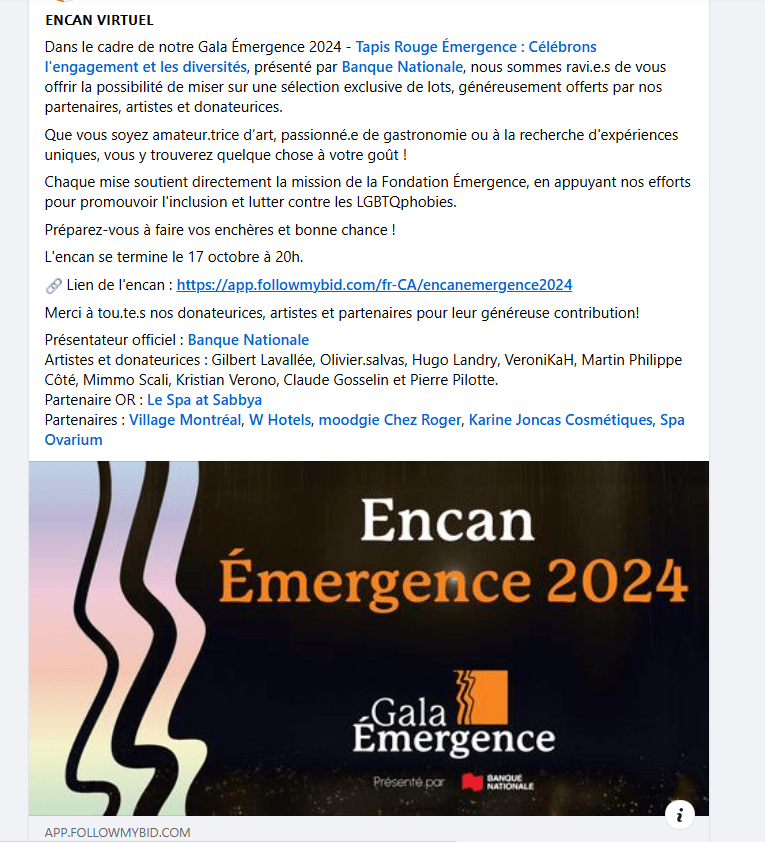Donation pour L organisme EMERGENCE $3456